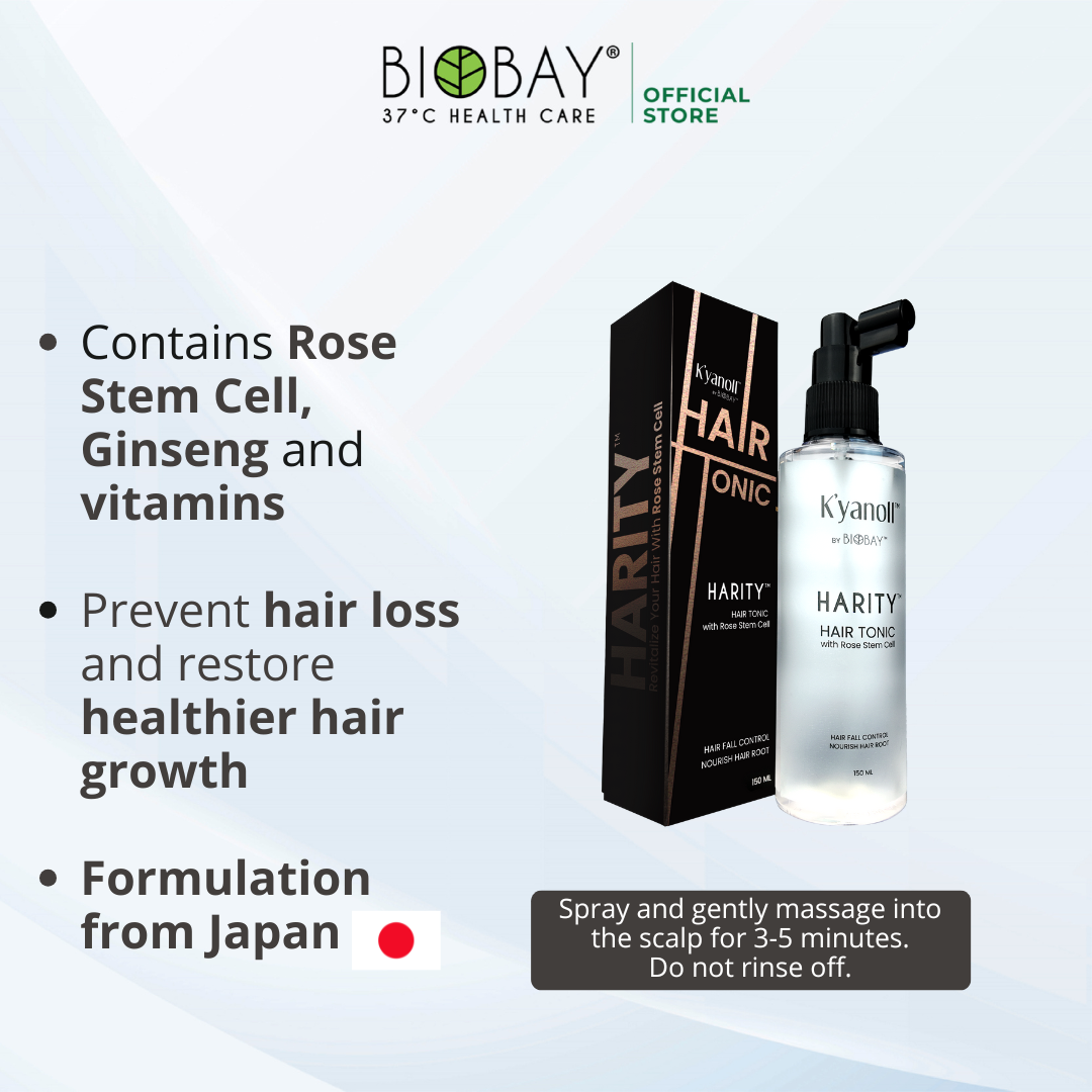 Spray and gently massage K’yanoll Harity Hair Tonic into the scalp for 3-5 minutes using fingertip pressure. Do not rinse off.