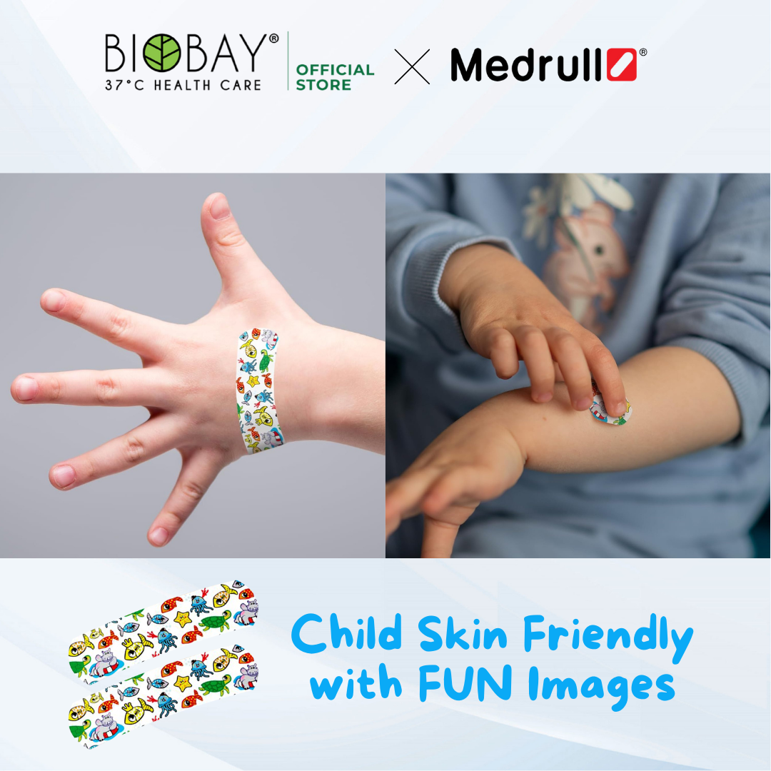 Plasters feature fun pictures your children will love. These universal plasters conveniently and properly protect a wound from moisture and dirt, allowing the wound to heal effectively and gently, while they are painless and easy to remove. Made of a thin, perforated polyethylene material, that allows skin to breathe.