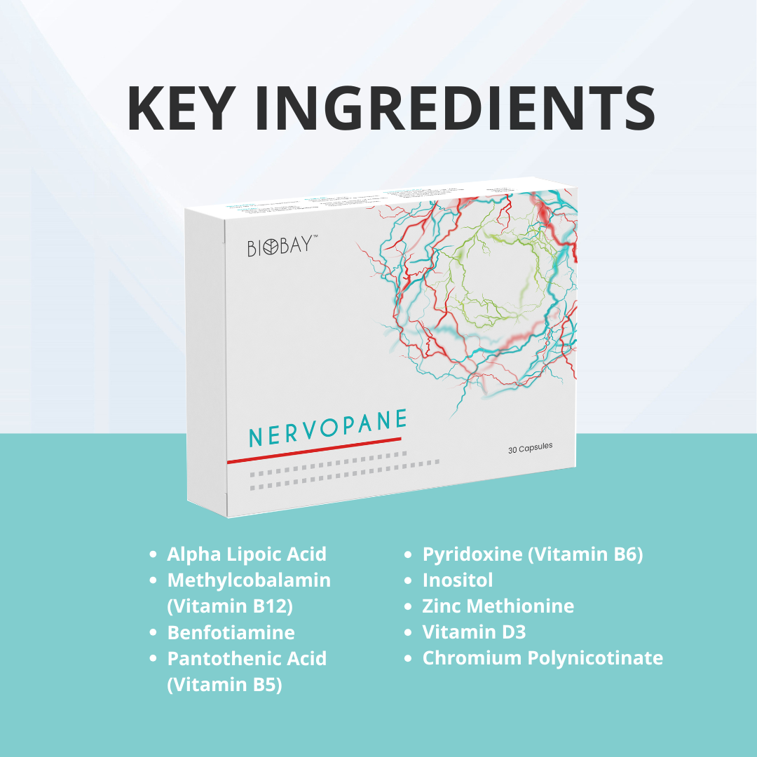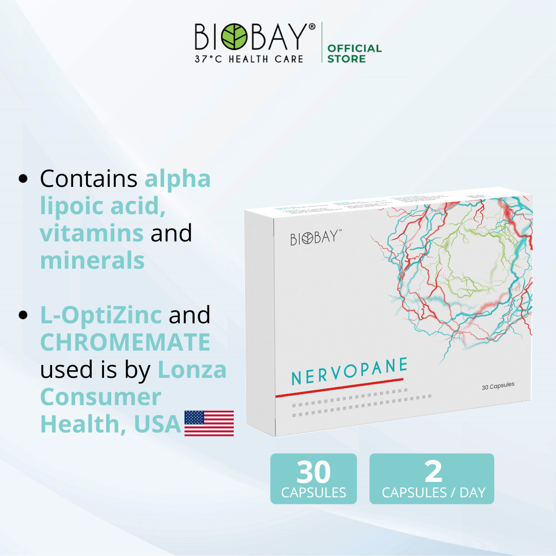 Biobay Nervopane contains alpha lipoic acid, vitamins and minerals.